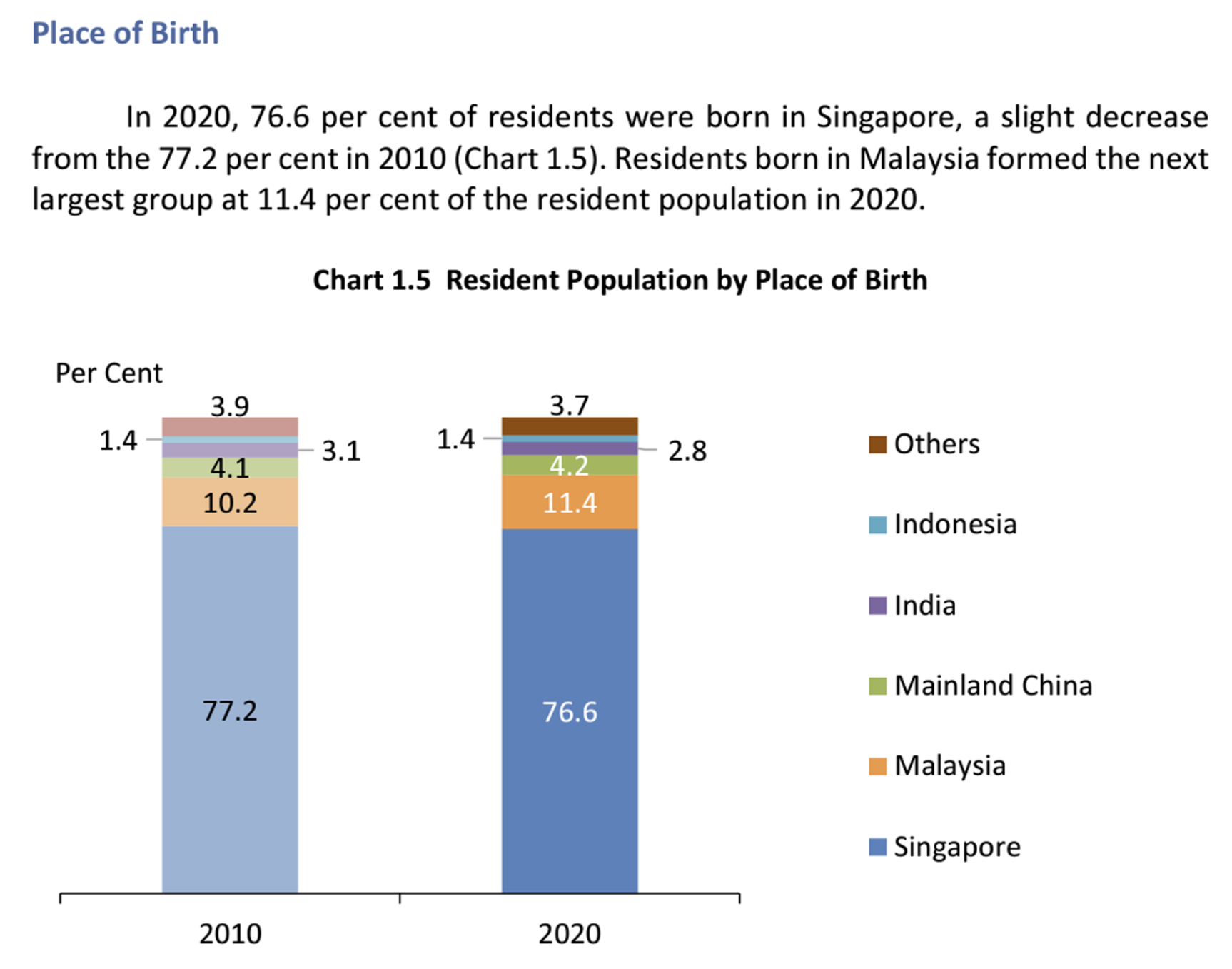 Well, that is a potential risk but only until you realise that mainland-born resident population in Singapore comprises only 4% of the total (see the chart I copied from the Department of Statistics).