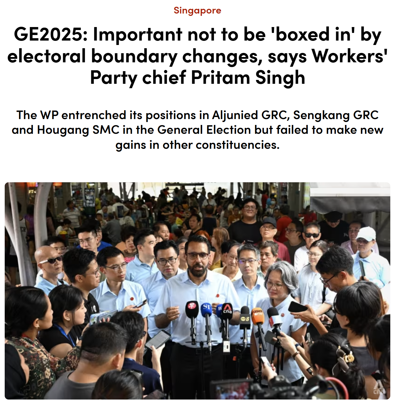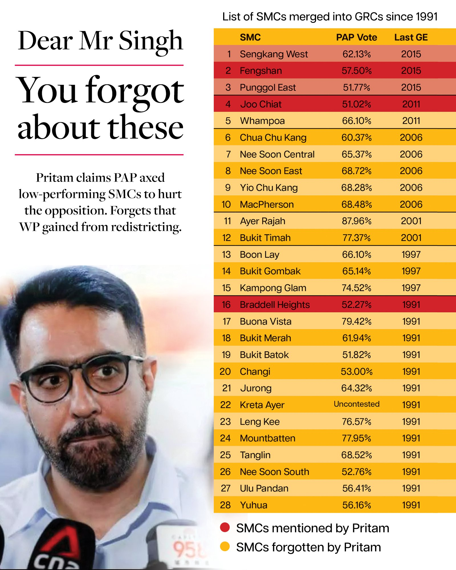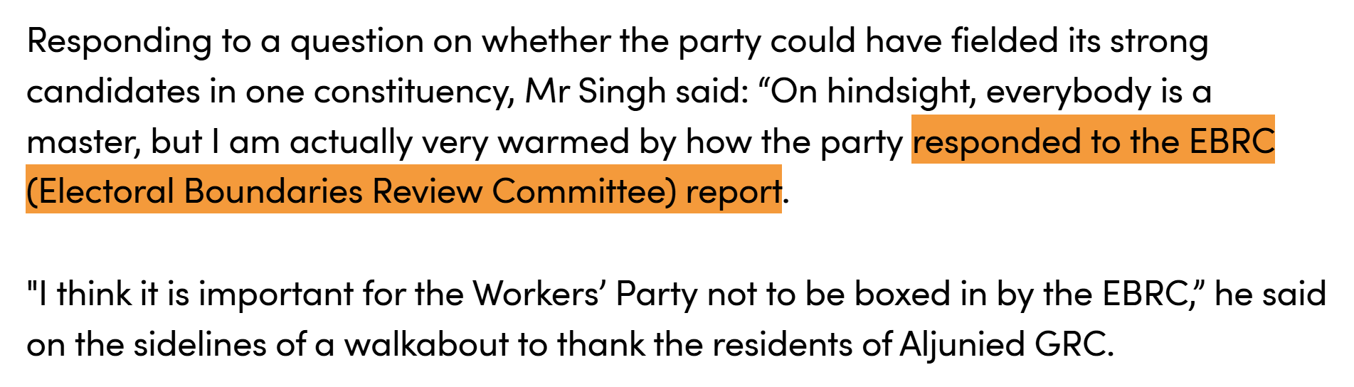 Of course it didn't stop Pritam from celebrating the party's hold on Sengkang GRC – a constituency that was created by EBRC in 2020, out of bits entirely controlled by the PAP, which the Workers' Party immediately won.
