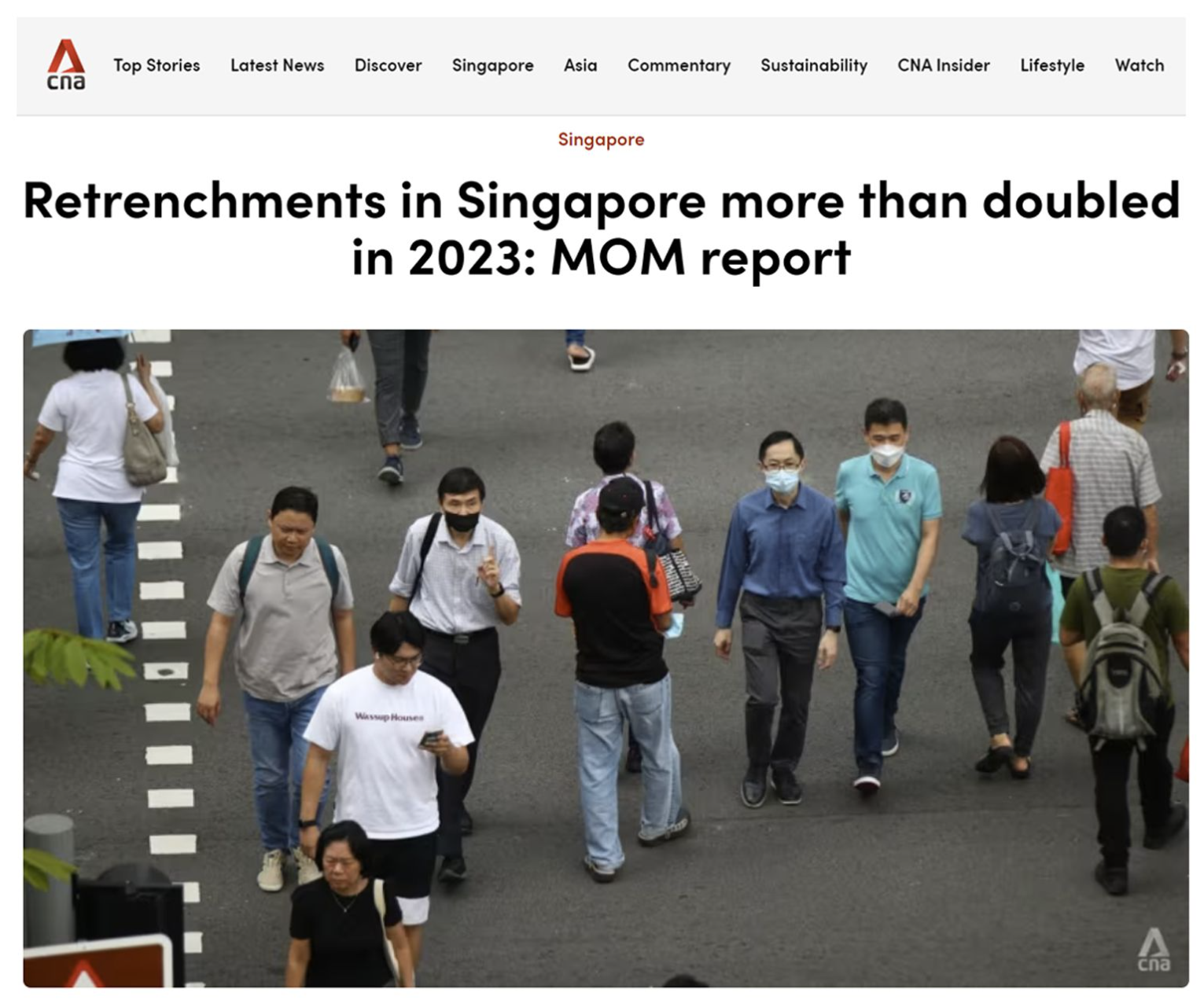 All I can read in the "news" up and down Singapore is how retrenchments doubled in 2023, to about 14,000 last year.