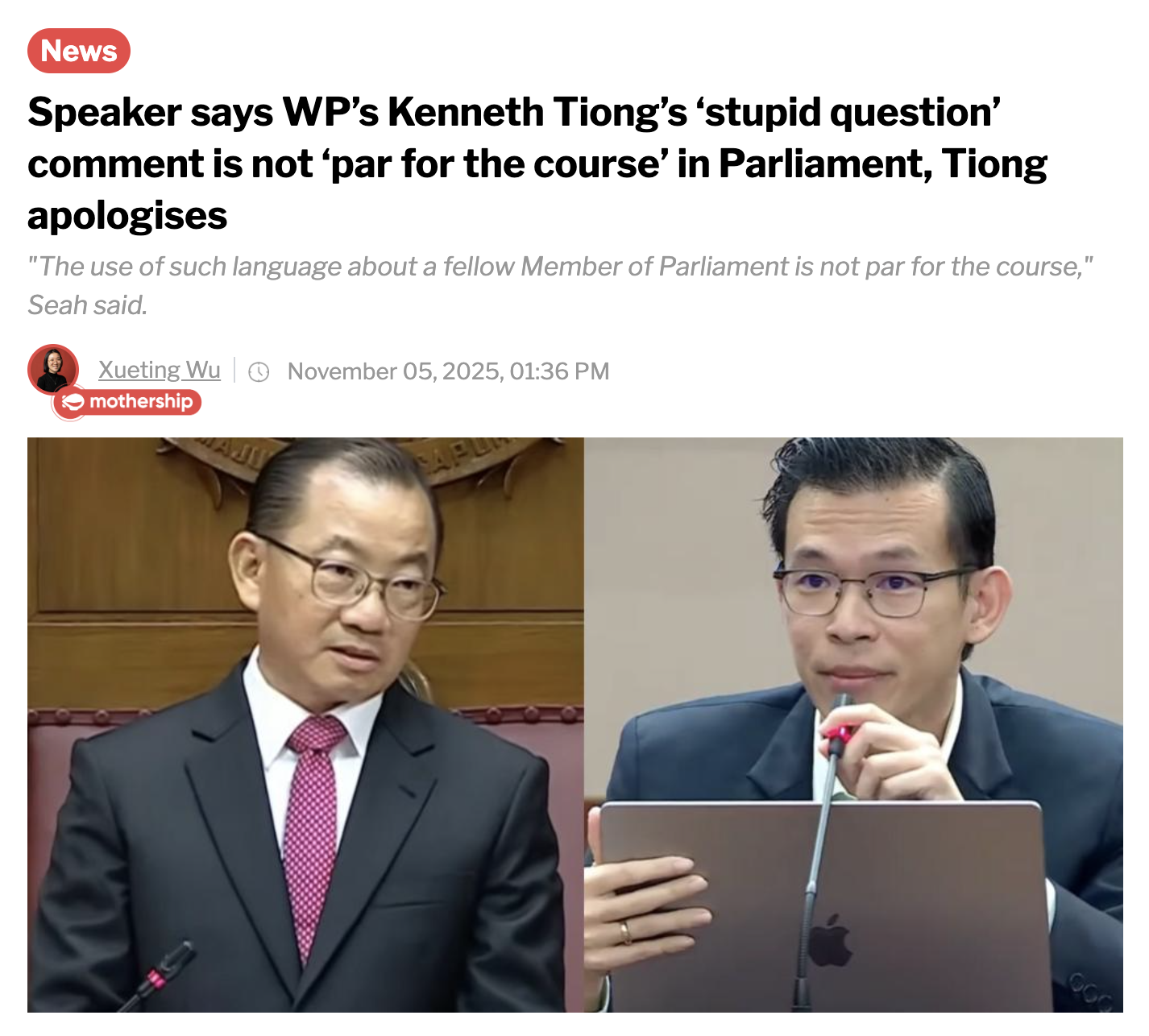 Kenneth Tiong's conduct in the parliament, however, while not illegal, is certainly controversial in ways that may cast a shadow on the entire party.